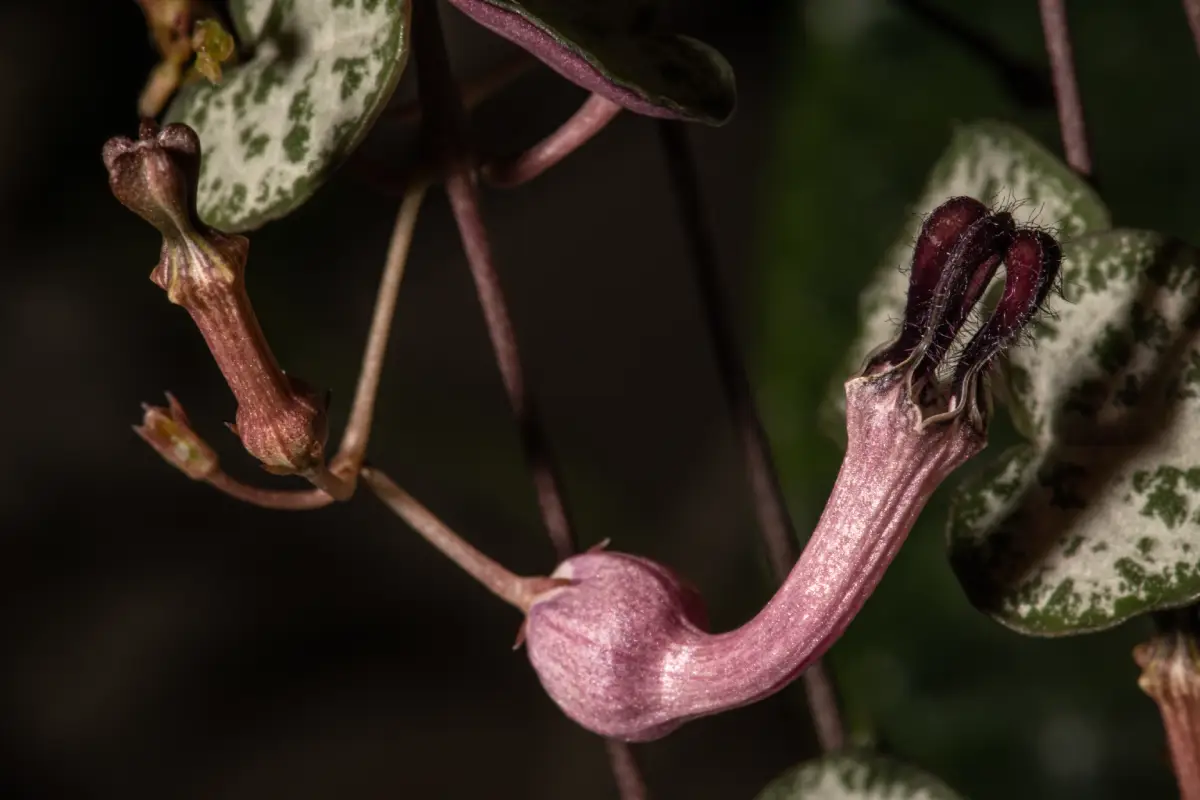 Die auffällige Blattform ist der Grund, dass diese Sorte ‘String of Hearts‘ genannt wird. Den Namen ‘Leuchterblumen‘ an sich verdanken die Pflanzen ihren Blüten, denn diese erinnern von der Form her an eine Laterne oder einen Leuchter.
