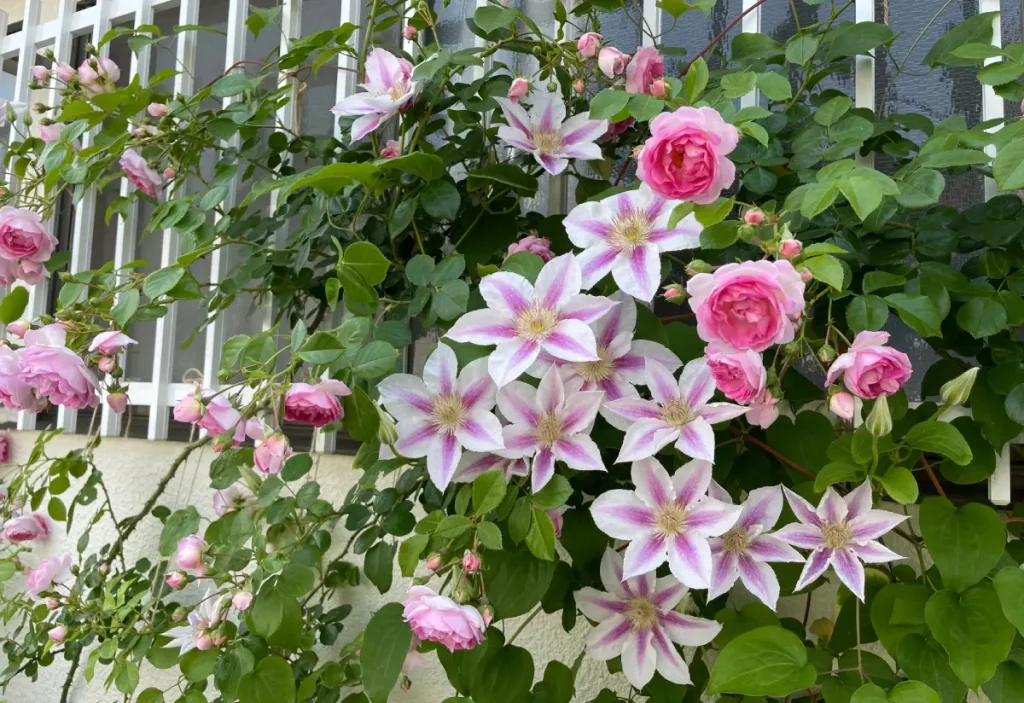 Kletterrosen lassen sich ganz wunderbar mit Clematis kombinieren