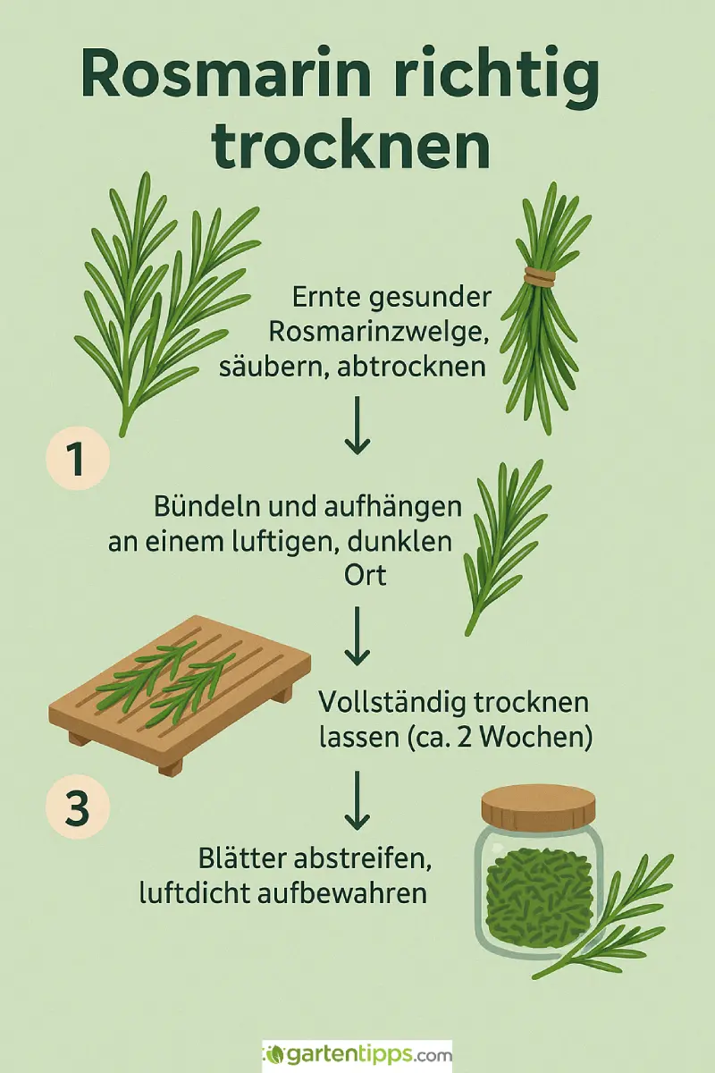 Hier Infografik zum Ausdrucken: Rosmarin an der Luft trocknen